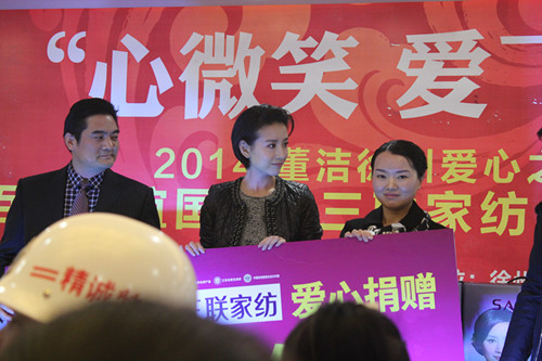 三聯家紡徐州慈善捐贈 董潔親臨宣傳愛心